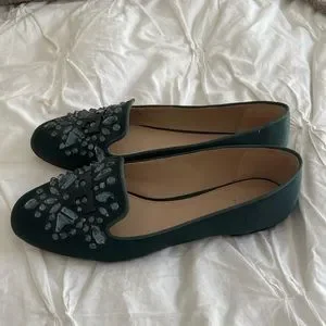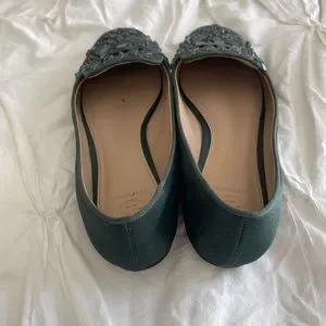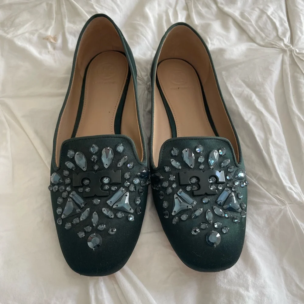 Beautiful satin jade green Tory Burch loafer. Leather sole. Only worn a couple of times and never outside so still in stunning condition!