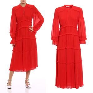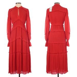 Tory Burch Stella Pleated Ruffle Chiffon Maxi Dress in Red Size 0 New With Tag