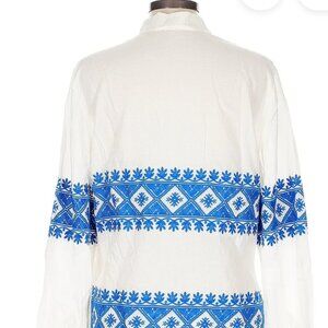 Tory Burch Stephanie Embroidered Coverup Tunic Top Ivory blue L