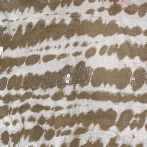 White and khaki print with subtle sequin detailing.