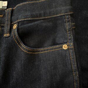 Five pocket stretchy blue jeans with gold tone hardware and embroidered back logo. Jeans are in excellent condition (hardly any signs of wear). Model's photo provided for reference.