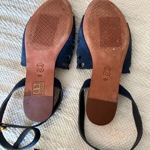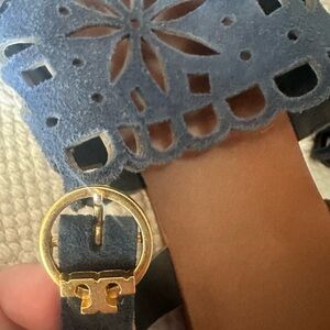 Beautiful navy blue velvet like sandals by Tory Burch.excellent condition