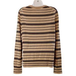 Tory Burch Striped Madeline Merino Wool Pullover Sweater Brown Green Womens L