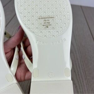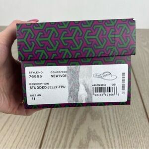 New in box, Tory Burch Studded Jelly Flip Flop Thong Sandals, size: 11 women's, color: Ivory/Cream, MSRP $128, in box.