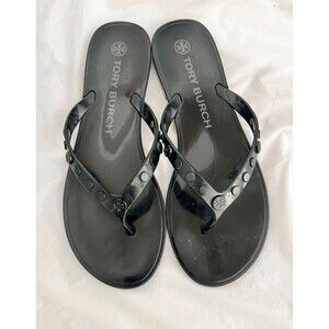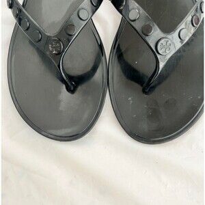 Tory Burch Studded Jelly Flip Flops Thong Sandals Black Size 8