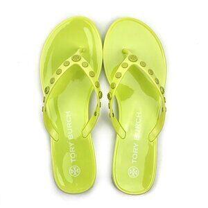 Tory Burch Studded Jelly Flip Flops Thong Sandals Lime Sherbet