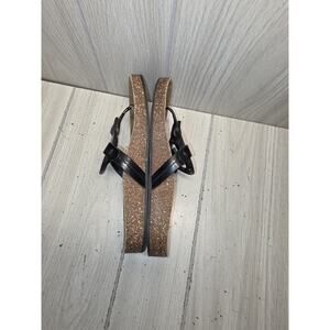 Tory Burch Style MILLER CLOUD Black Patent Leather Cork Thong Sandal Size 6.5 Summer Beach Tropical Cruise Boho Beach Cruise Cottagecore Comfort Shoes