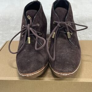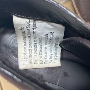 Tory Burch Suede Booties 6.5M Brown Lace-Up Fur Lined Leather Upper Heel