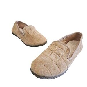 Tory Burch Suede Leather Shearling Lined Quilted Slip-on Flats Khaki Size 7