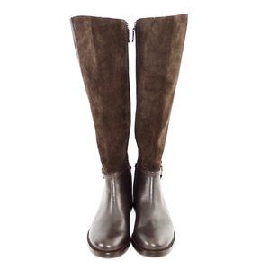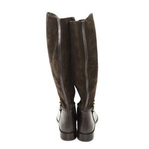 Condition: Gently Used/ Signs Of Wear; wear to leather upper, scuffs/marks to the sole. Heel height: 1''. 8'' calf opening at the top. Fabric: leather. Size: 8.5