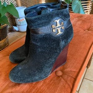 Tory Burch Suede Wedge Ankle Boots