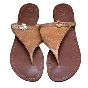 Tory Burch Suede With Leather Trim Sandal, Chestnut, Size 9