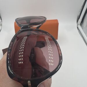 Tory Burch Sunglasses Tortoise Shell Frame Exaggerated Cat Eye Rose Brown Lens