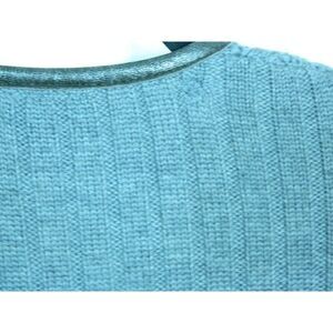 Tory Burch Sweater Cardigan Size Large Gray Wool Leather Trim Round Neck Zip Up