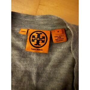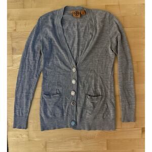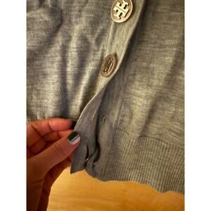 Tory Burch Sweater V Neck Gray Wool Cardigan Logo Buttons M *missing Button*