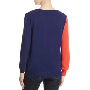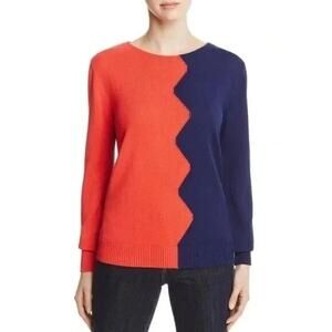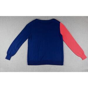 Tory Burch Sweater Womens L Red Orange Blue Colorblock Cotton Blend Pull Over