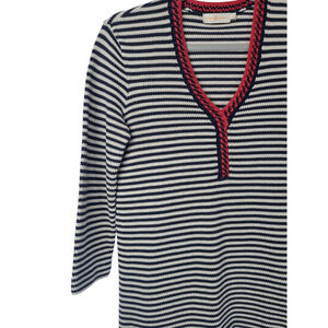 Tory Burch Sweater Women's Small Striped V-neck Pullover 3/4 Sleeve Cotton