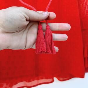 Tory Burch Swiss Dot Textured Red Orange Bell Sleeves Blouse 4 Top Boho Ruffle