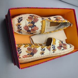 Tory Burch Sz 10.5 Flats Shoe Grosgrain Whipstitch Espadrille Printed Canvas New