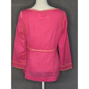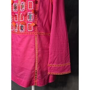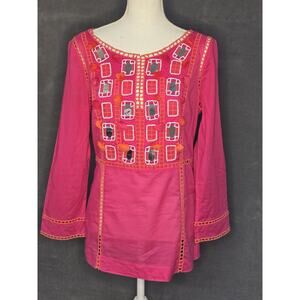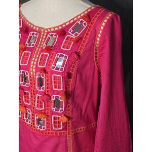 Tory Burch Sz 8 Women's Top Pink Embroidered Tassel Sequin Round Tunic Retro