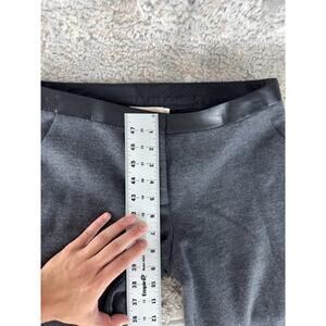 Tory Burch Sz S Wool Blend Faux Leather Trim Pants Gray Button Zip Straight Leg