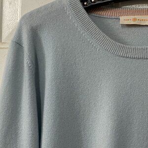 Tory Burch Sz XL 100% Cashmere Womens Sweater Pullover Crew Neck Soft Blue