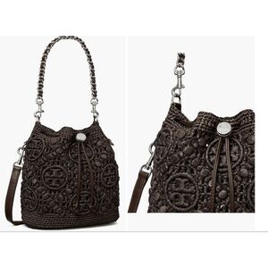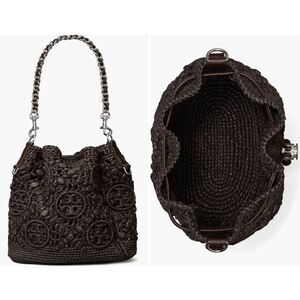 Tory Burch T MONOGRAM RAFFIA BUCKET BAG $630
