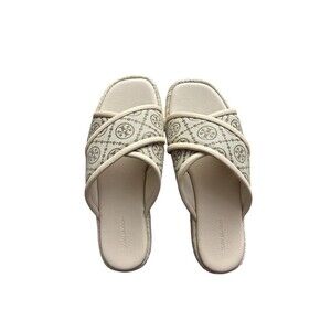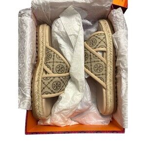 Tory Burch T Monogram Crisscross Espadrille Cream Slide Sandals Size 9 New