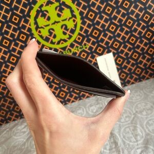 Tory Burch T Monogram Embossed Patent Leather Card Case Wallet Albarossa