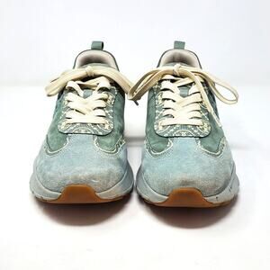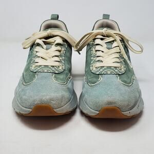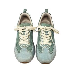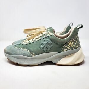 Tory Burch T Monogram Good Luck Trainer Suede Sneakers Blue Celadon Size US 9