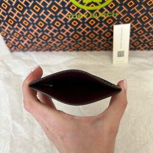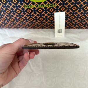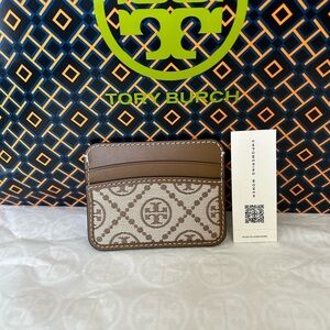 Tory Burch T Monogram Jacquard Card Case Hazelnut Gold Tan Brown