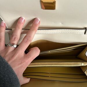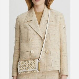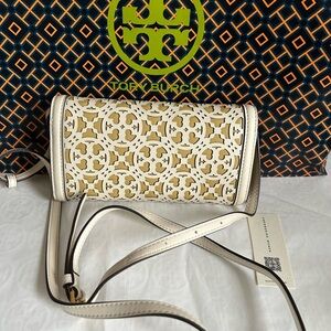 Tory Burch T Monogram Laser Cut Wallet Crossbody Bag New Ivory Beeswax Gold