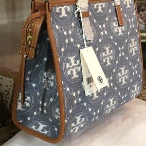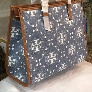 Tory Burch T Monogram Leather and Canvas Denim Large