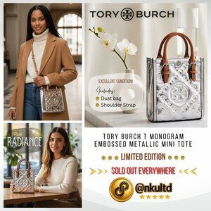#ToryBurch #TMonogram #MetallicTote #DesignerBag #HolidayGlam #LuxuryGift #RareFind #SoldOut