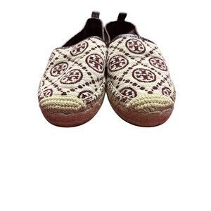 Tory Burch T Monogram Soft Croco Embossed Flatform Espadrille Shoe Sz 8.5 $298