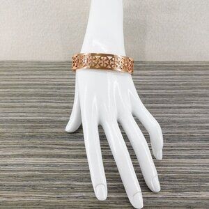 Tory Burch TB Gold Logo Cut out Cuff Bracelet Rose Gold OS