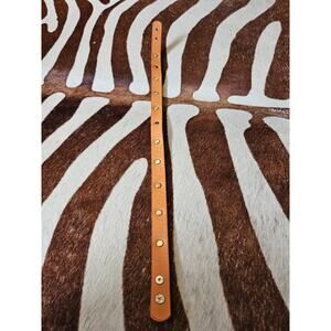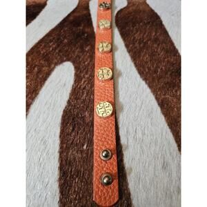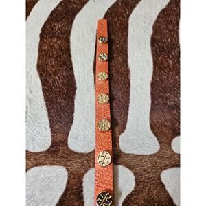 Tory Burch TT Logo Studded Bracelet Double Wrap Gold/Orange Genuine Leather EUC