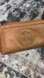 Elegant Tory Burch wallet. Features tan leather. Iconic logo design.