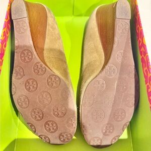 Tory Burch Tan Leather wedges with wooden Medallion