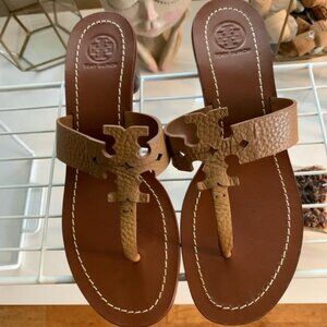 Tory Burch - Tan Logo Thong Leather Sandals w Heel