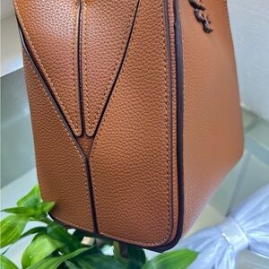 Chic Tory Burch mini bag in tan. Features signature logo detail. Ideal for stylish outings.