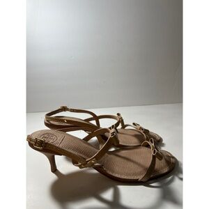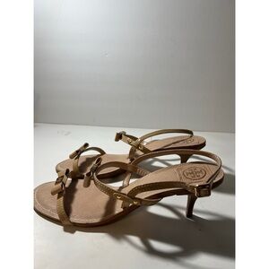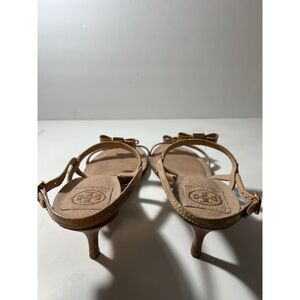 Step out in style with these elegant Tory Burch sandals. Featuring a chic tan color and charming bow detail, these sandals are perfect for any occasion.