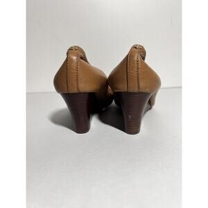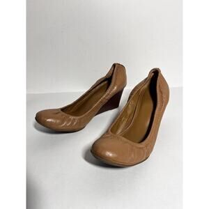 Elegant Tory Burch wedge heels. Smooth tan leather. Perfect for any occasion.