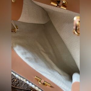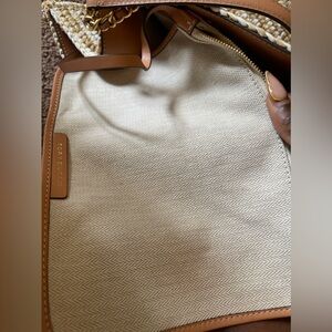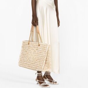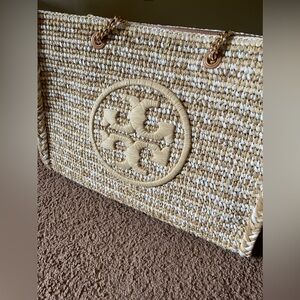 Stylish Tory Burch tote. Features woven design. Includes matching pouch. Perfect for everyday use.