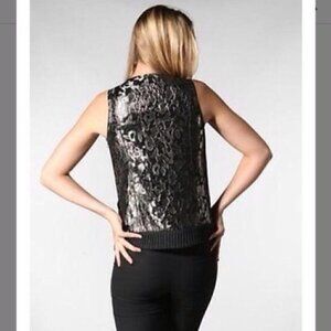 Tory Burch Tank Top 8 Lamé Wool Metallic Sleeveless Leopard Animal Black Luxury