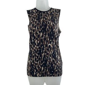 Tory Burch Tank Top Size Small Sleeveless Career 100% Merino Wool Leopard Print