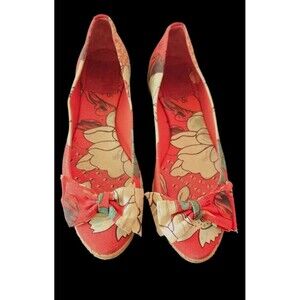 Tory Burch Tasmin Red Floral Print Espadrille Flats Canvas Jute Sole Women's 7B