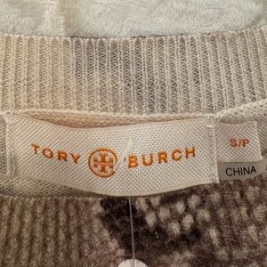 Tory Burch - Taupe & Beige Snakeskin Print Crewneck Sweater Sz S cotton/wool