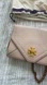 Chic leather clutch with signature gold logo. Sleek envelope design. Has a long chain to wear over the shoulder. Best neutral color to go with anything. Versatile piece! I only wore this maybe twice. The only flaw I see is a very small stain in the inside of the clutch which can most likely be cleaned off. Some of the hardware still has the clear sticker protector. Comes with dust bag!