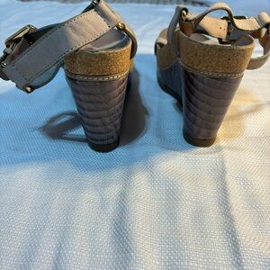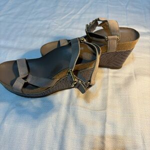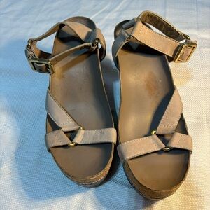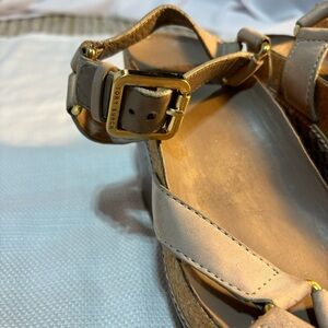 Tory Burch Taupe Leather Wedge Ankle Strap Sandals Size 8.5